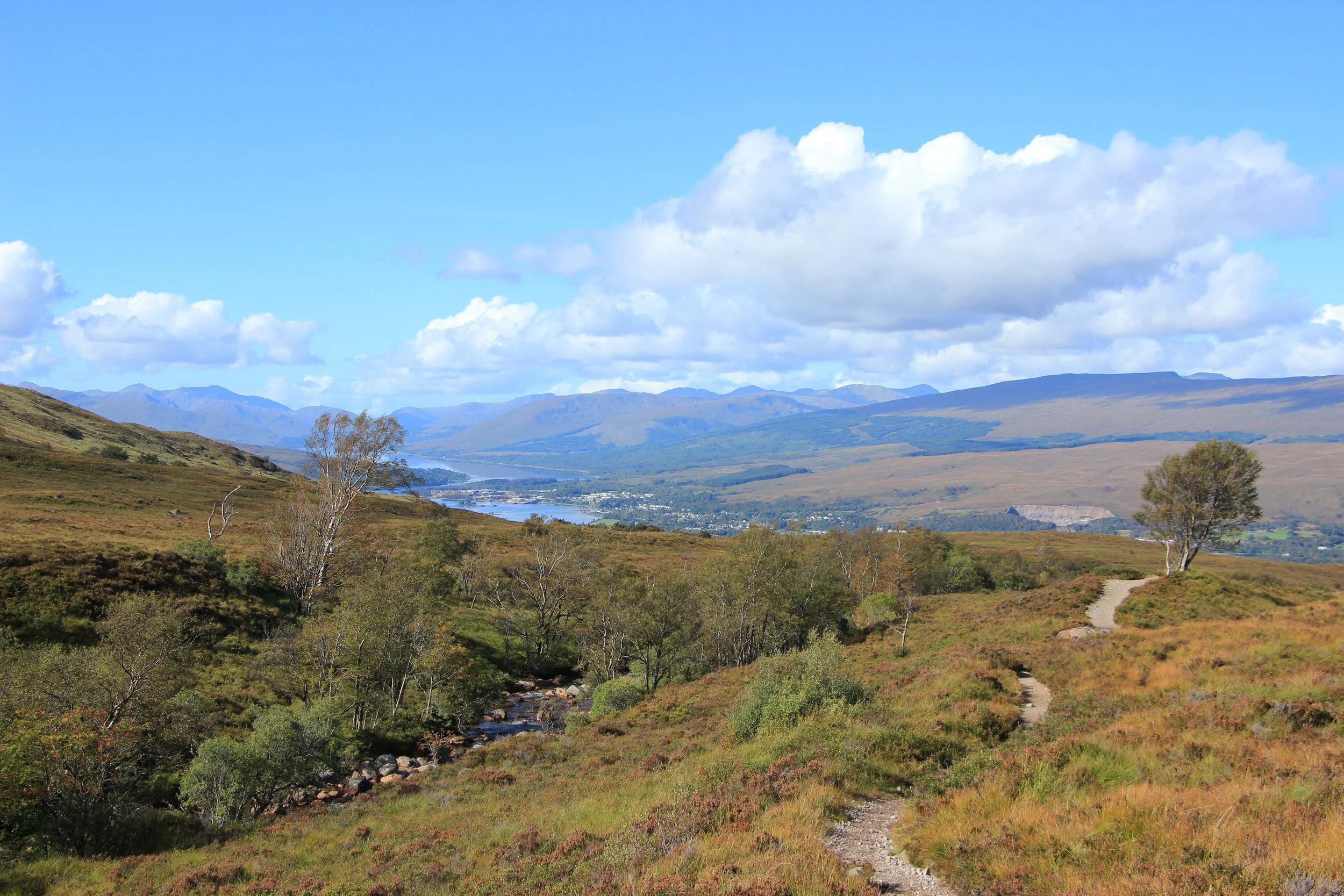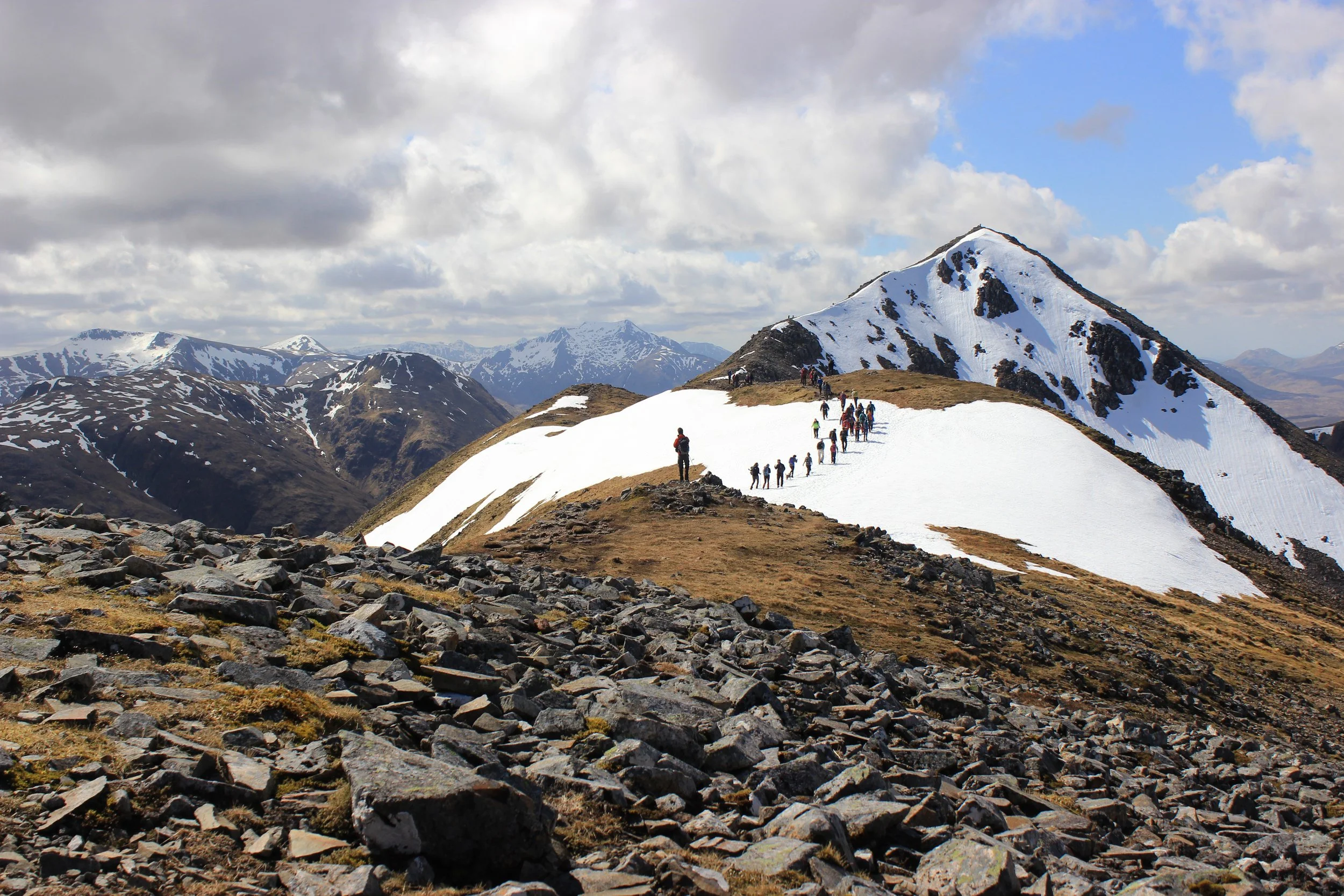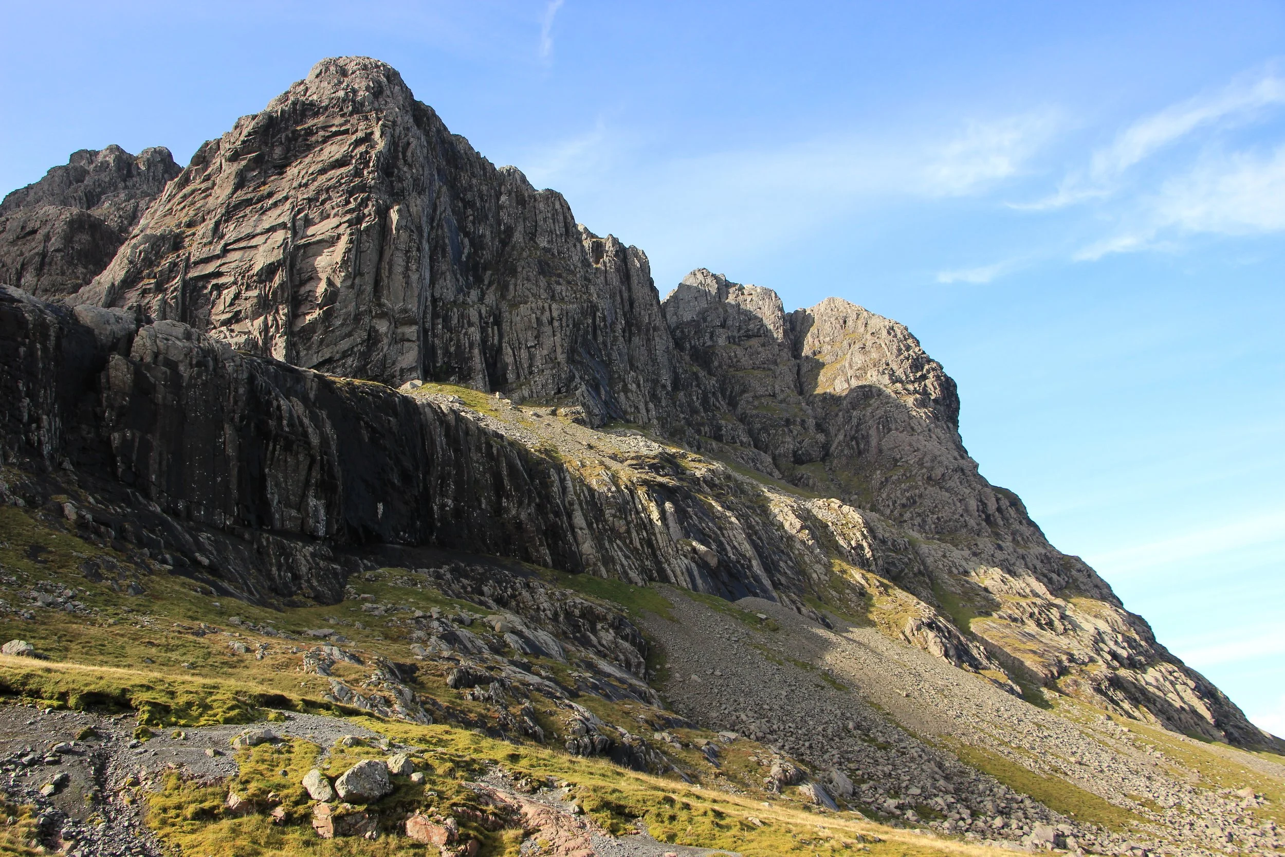 There’s an easy and reasonably level path along the coast in Fort William on the Great Glen Way with views towards Ben Nevis and ruins of Old Inverlochy Castle. If you are craving mountain views but have limited mobility, the car park at the Commando Memorial offers great views towards Ben Nevis and the Grey Corries. However, our favourite short walk in the area would be to the Steall Falls along the Nevis Gorge. It’s very scenic and the reveal of the waterfall at the end is hard to beat. If you fancy a longer walk without getting all the way to the tops, the walk up to the CIC mountaineering hut on the north face of Ben Nevis is a delight with the amazing atmosphere of the craggy north face and if needed could be cut shorter to just above the forestry with great views all around. If you are ready for higher hills, the hike up Stob Ban is amazing with views of its craggy face on one side and Ben Nevis on the other side. Carn Mor Dearg is another great candidate, the walk itself is long but straightforward with amazing views of Ben Nevis, the surrounding hills, and the narrow arete that connects it to Ben Nevis.