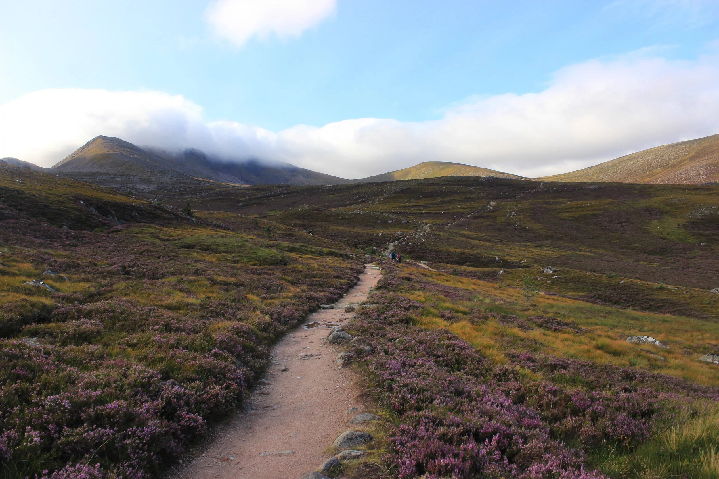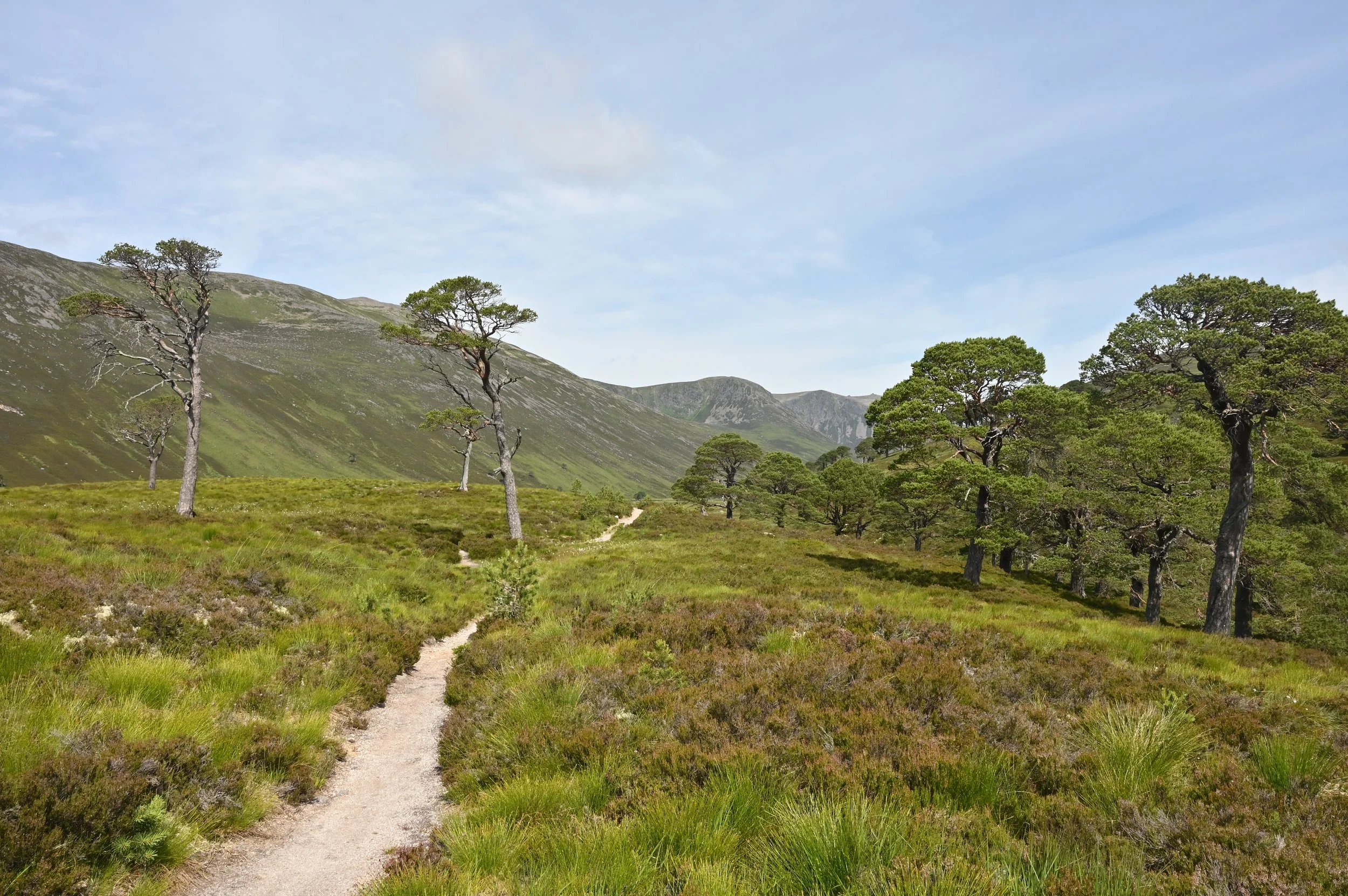 This area has a particularly wide range of great flexible walks. Craigellachie is one of them and easily accessible from Aviemore. The lower reaches have nice paths around the lochans, but you also have the option of going to the top of the hill on some rougher, steeper paths for great views of the Cairngorms and Aviemore. Uath Lochans and Farleitter crag is a similar type of walk with amazing views over Glen Feshie. Another great walk is up to the famous An Lochan Uaine, there are two paths that head there, one rougher through beautiful woodland and one wide forestry track that would be accessible with bikes and off-road buggies. After the Loch you’ve got the option to continue further and go up the corbett Meall A’Bhuachaille before heading back down to Glenmore. The Cairngorm mountain car park offers many choices for more experienced hikers, the Cairngorm and its northern corries being the closest of them, but even a short wander on the lower path towards the northern corries is absolutely stunning.
